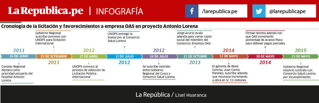 El 12 de julio de 2012 se consumó otro acto de corrupción en la gestión del expresidente regional Jorge Acurio. Ese día el Gobierno Regional del Cusco (GRC), a través la Oficina de las Naciones Unidas de Servicios para Proyectos (UNOPS), adjudicó la buena pro del proyecto hospital Antonio Lorena al consorcio Salud Lorena, conformado por OAS, Dextre Morimoto y Motlima.