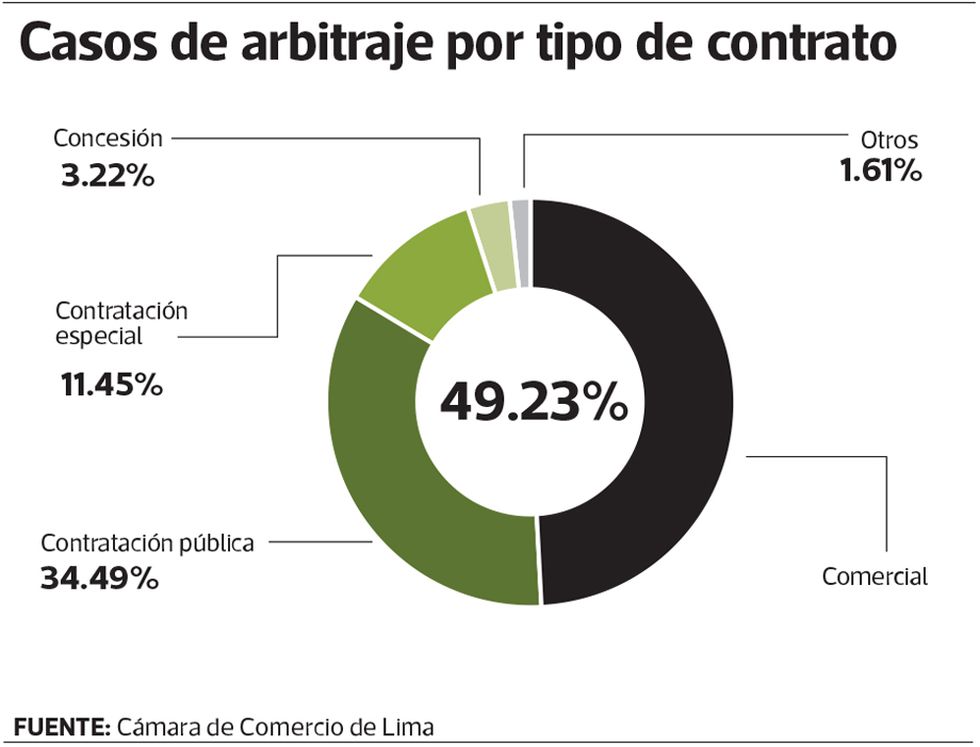 En el 2019, 346 de los 600 nuevos arbitrajes en la CCL son por casos de contrataciones con el Estado, mientras que 15 de los 600 son por casos de concesiones.