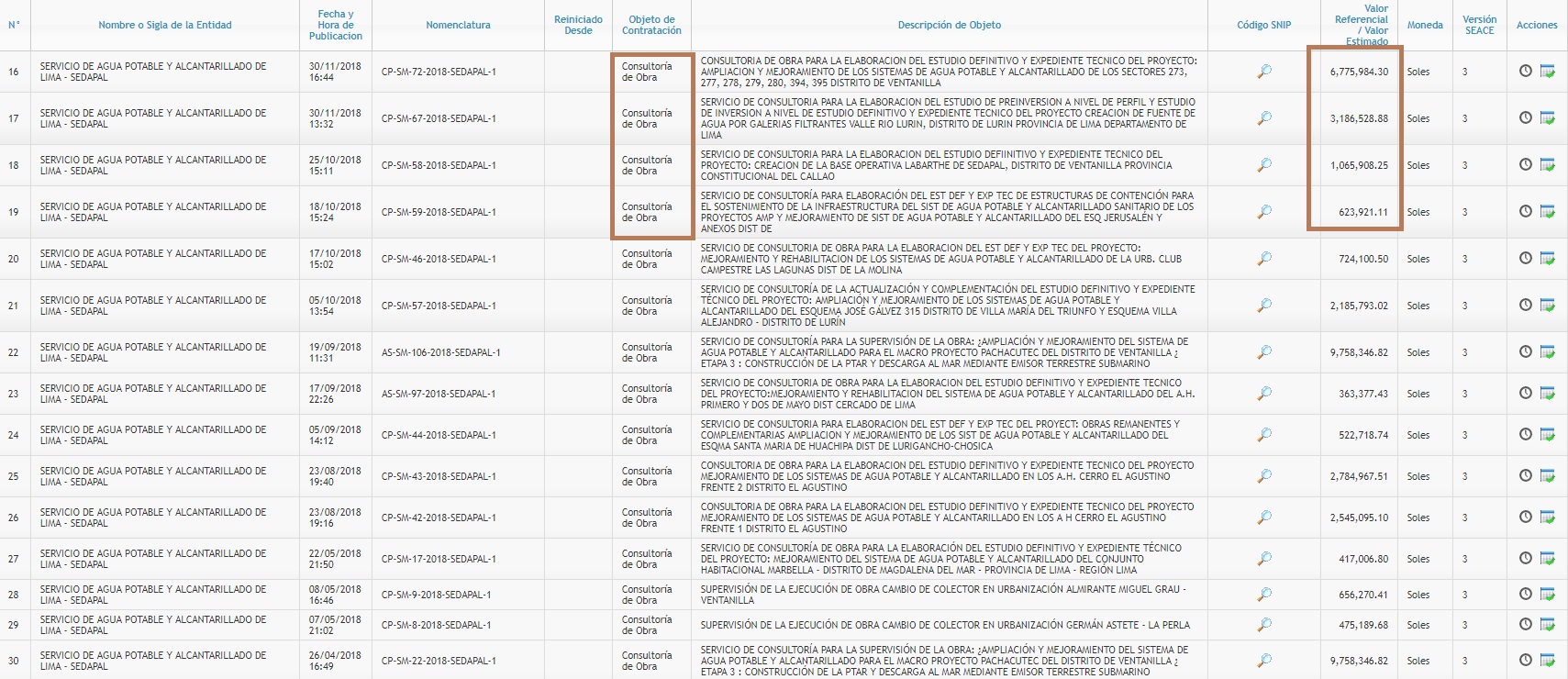 Pero, ¿para qué son las citadas consultorías?. Correo verificó que desde diciembre 2018 Sedapal planificó 19 de 31 consultorías para este año 2019, por millonarias sumas que se pagarán entre enero y febrero.